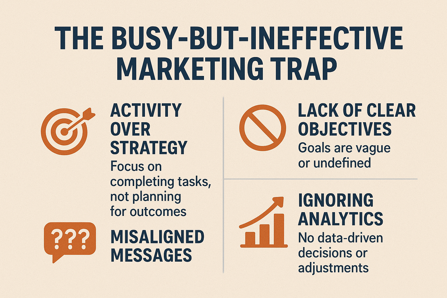 In this blog, we’ll unpack the common pitfalls that lead to “busy marketing” with little payoff—and how you can reorient your efforts toward strategy and measurable results.